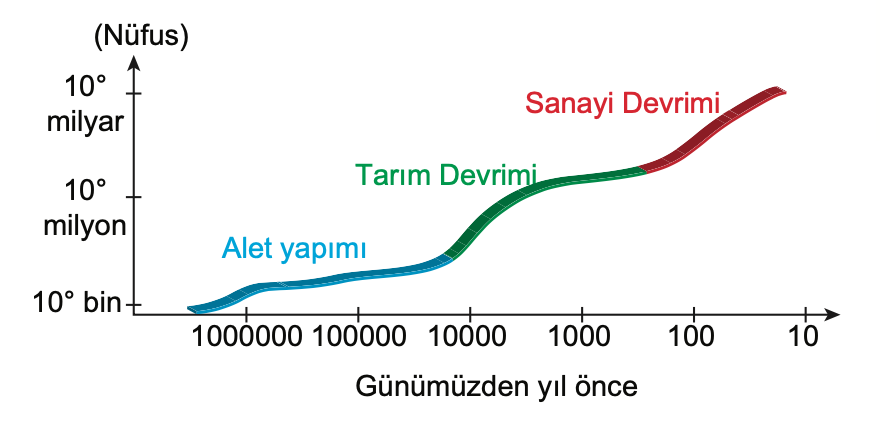 Aşağıdaki grafikte Dünya nüfusunun sıçrama dönemleri ve nedenleri verilmiştir.