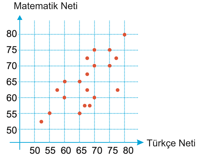 20 kişilik bir sınıftaki öğrencilere DGS sınavı uygulanmıştır. Grafikte bu sınıftaki öğrencilerin yaptıkları netler gösterilmiştir.