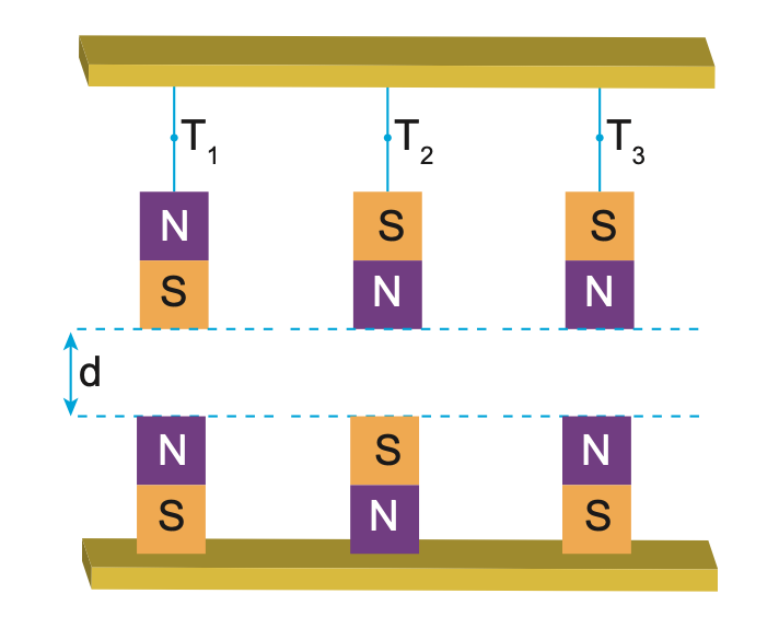 Özdeş mıknatıslarla kurulmuş sistemler d kadar uzaklıkta tutulmuştur.
