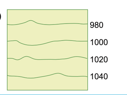 Buna göre aşağıda verilen yörelerin hangisinde rüzgâr daha yavaş eser? (Basınç değerleri mb olarak verilmiştir.)