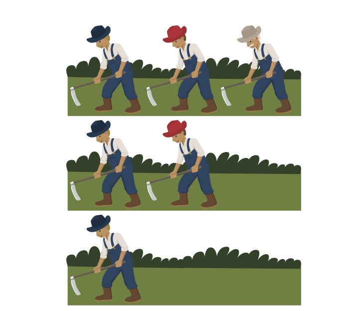 Bir tarlayı çapalamaya aynı kapasiteli üç işçi başlıyorlar. İşin yarısına gelince bir işçi ayrılıyor. Kalan işin yarısı bitince bir işçi daha ayrılıyor. İşi kalan işçi tek başına bitiriyor.