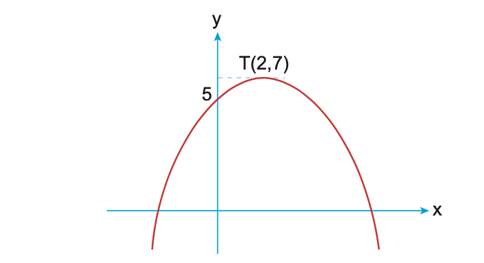 Aşağıda grafiği verilen parabolün tepe noktası T(2,7) ve parabol y eksenini 5’te kesmektedir.