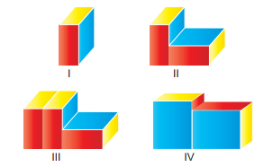 Aşağıda I numaralı şekilde boyutları farklı ve birer tam sayı olan dikdörtgenler prizması gösterilmiştir. Eş prizmalar bir araya getirilerek II, III ve IV numaralı şekiller oluşturulmuştur.