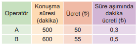 Aşağıda iki farklı telefon operatörü ile ilgili aylık ücretlendirme tablosu yer almaktadır.
