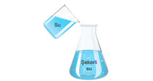 Yukarıda verilen doygun şekerli su çözeltisine çözelti hacminin yarısı kadar su ekleniyor.