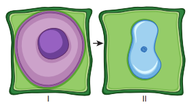 Bir bitki hücresi I. durumdan II. duruma geldiğine göre;