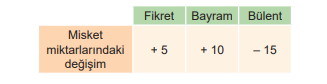 Oyun sonunda kimisinin misketi azalırken kimisinin artar. Misket sayıları ile ilgili değişim tablosu aşağıda verilmiştir.