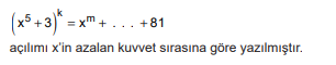 I. k = 4 tür. II. m = 15 tir. III. Terim sayısı 5 tir