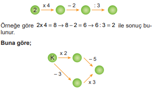 Aşağıdaki işlem şemasında ok yönünde belirtilen işlem yapılacaktır ve okun ucundaki daireye sonuç yazılacaktır.