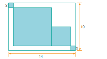 Dikdörtgen içerisine karşılıklı köşelere bir kenarı 2 birim olan kareler olmak üzere 4 kare çizilmiştir.