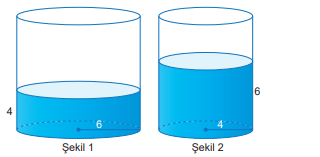 Buna göre aynı muslukla şekil 2’deki yarıçapı 4 birim olan dik silindirdeki 6 birim yüksekliğindeki su kaç dakikada dolar?