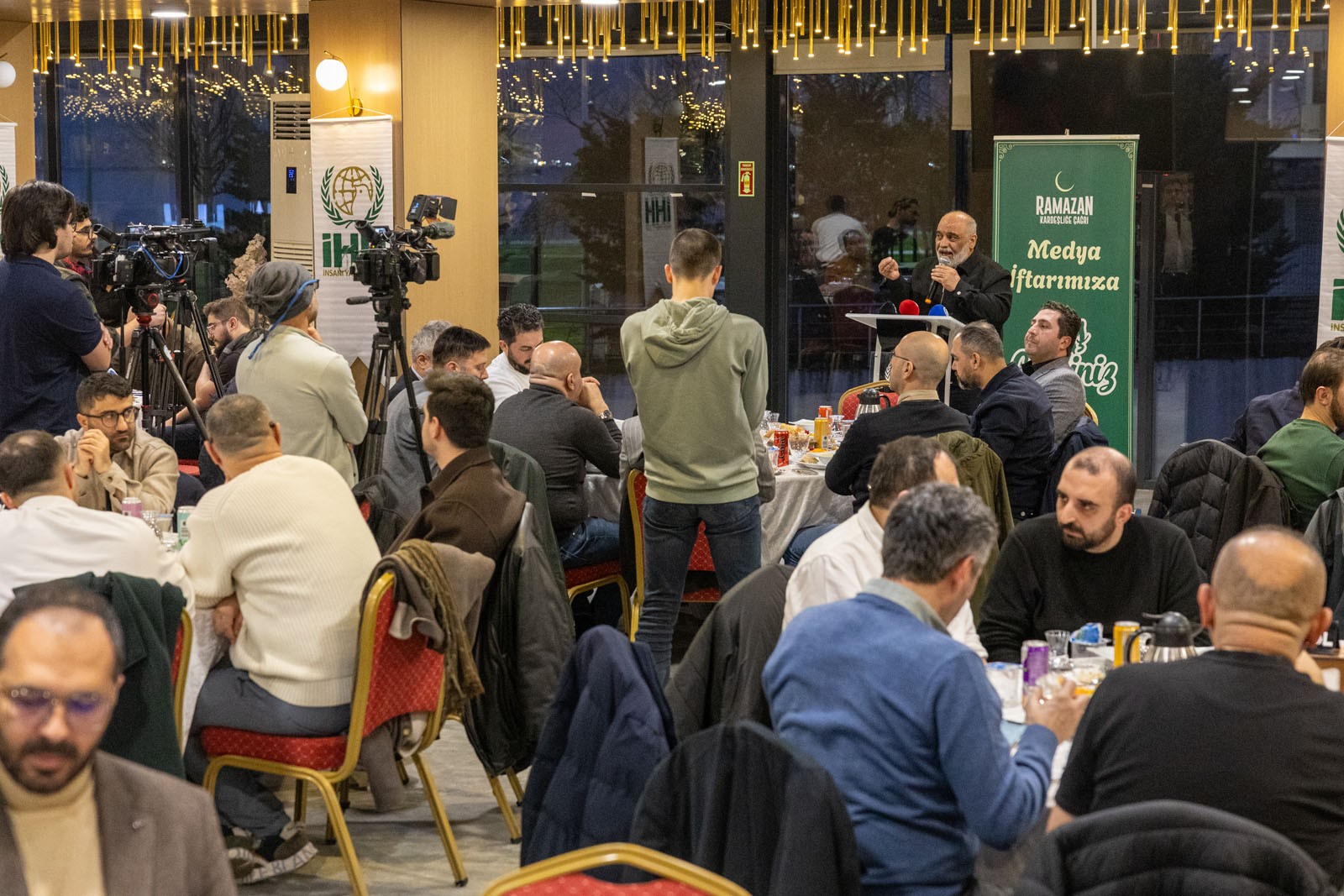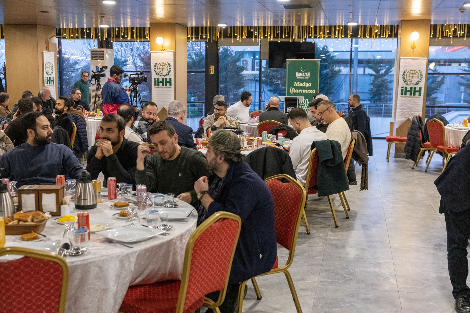 İstanbul Fatih'te düzenlenen iftar programına ulusal, uluslararası ve yerel medyada görevli çok sayıda medya mensubu katıldı. Medya kuruluşlarından genel yayın yönetmenleri, haber müdürleri, muhabirler, editörler ve kameramanların bulunduğu iftar programında konuşan İHH Genel Başkanı Bülent Yıldırım, Gazze’de İsrail’in işgali sebebiyle gıda krizinin yaşandığını, kanser hastalarının tedavi göremediğini ve sağlık hizmetlerinin durma noktasına geldiğini belirtti. Yıldırım, “Belli ki Amerika bir hazırlık yapıyor, İsrail bir hazırlık yapıyor ve bu ateşkes geçici bir ateşkes. O zaman biz de durmayacağız. Su uyur, düşman uyumaz. Biz elimizdeki gücü niye değerlendirmeyelim? O da halkların ittifakı. Şu anda dünya halklarını tekrar harekete geçirmek üzere çalışmalara başladık. Sizden ricam tüm gücünüzle destek vermeniz” dedi.