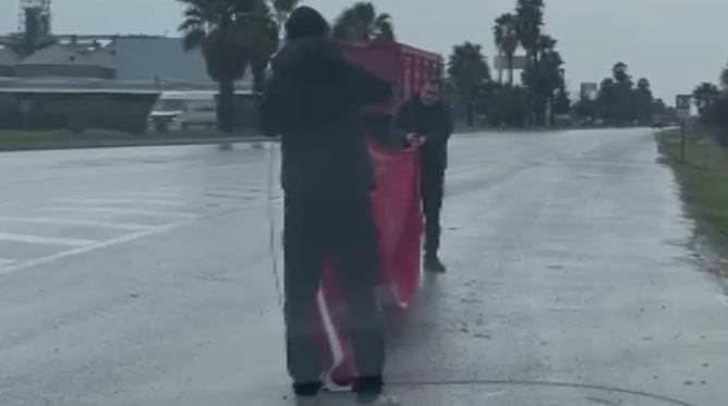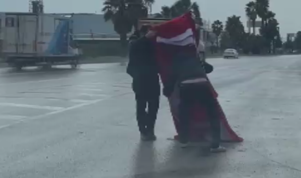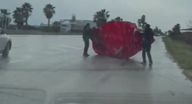 Mersin’in Tarsus ilçesi D400 kara yolu üzerinde, fırtına sonrası yürekleri ısıtan bir olay yaşandı. Yol kenarındaki bir gönderde dalgalanan büyük boydaki Türk bayrağı, şiddetli rüzgarın etkisiyle koparak kara yolunun ortasına düştü. Bayrağın yerde olduğunu fark eden duyarlı sürücüler, hiç tereddüt etmeden araçlarını yolun ortasında durdurdu.