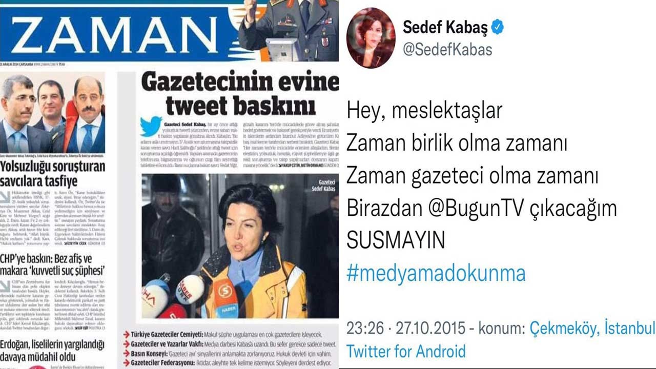 Anadolu Cumhuriyet Başsavcılığı tarafından yürütülen soruşturma çerçevesinde gazeteci Sedef Kabaş’ın "Cumhurbaşkanına hakaret" ve "suç işlemeye tahrik" suçları kapsamında gözaltına alındığı öğrenildi.