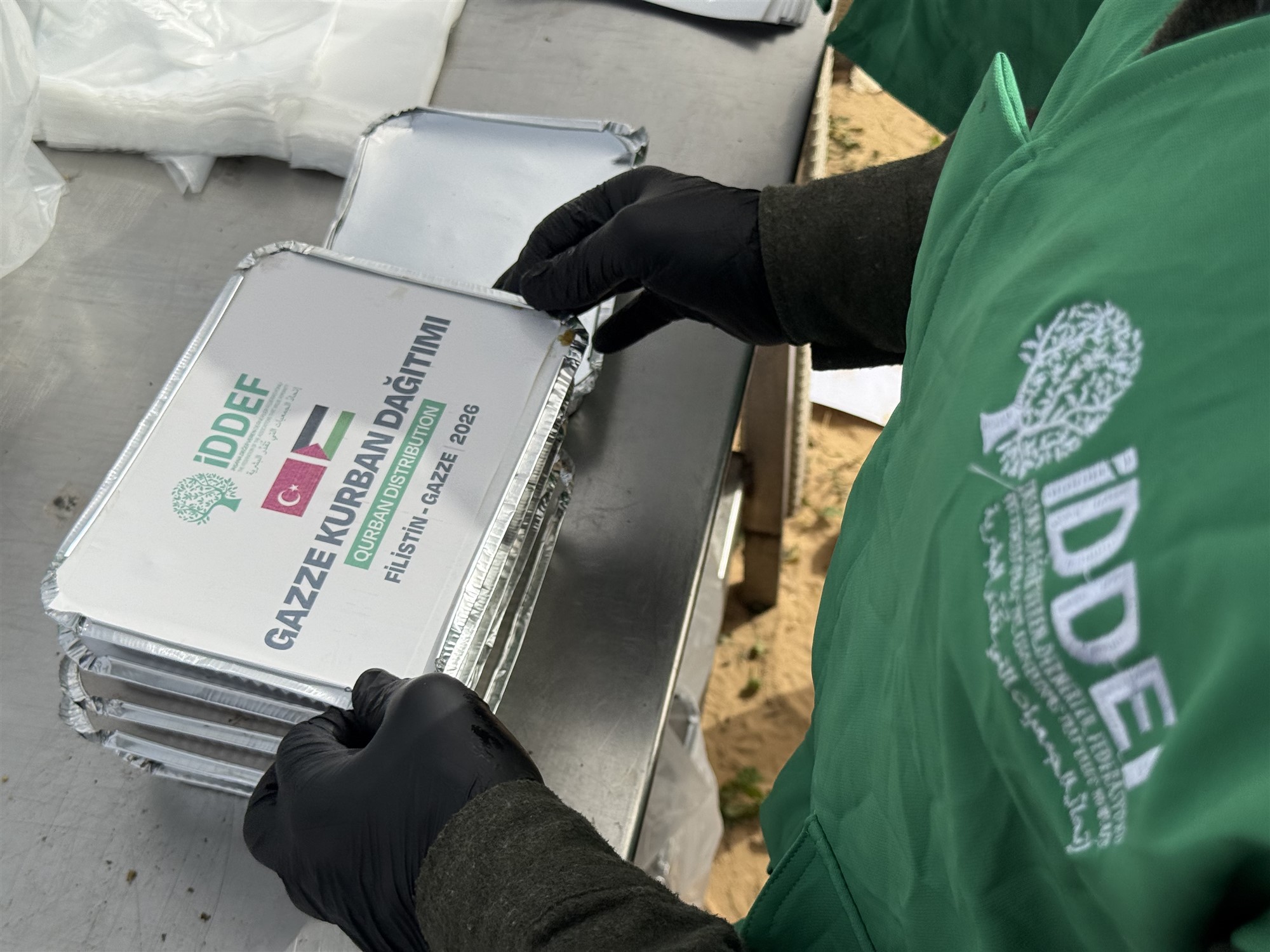 İDDEF, 2025 yılı Kurban organizasyonu kapsamında Gazze için bağışlanan kurbanların etlerini yıl boyunca hem konserve hem de etlerden hazırlanan sıcak yemek olarak dağıtmaya devam ediyor.