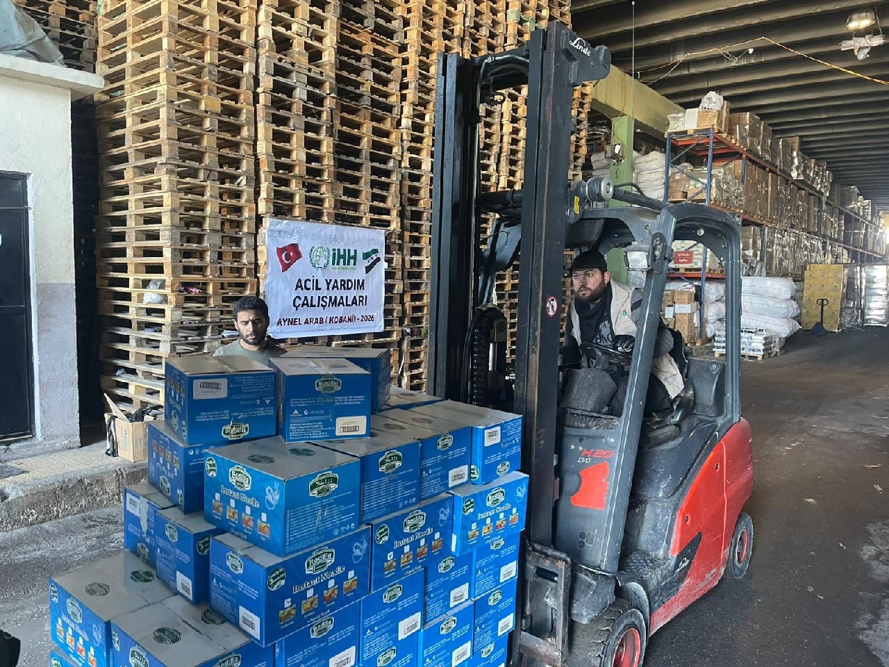 İHH İnsani Yardım Vakfı İnsani Diplomasi Birimi’nin yoğun temasları ile insani yardım koridorunun açılması yönünde önemli bir süreç işletildi. Açılan koridor üzerinden bölgeye yardım sevkiyatı başladı. İHH, çatışmalar ve zorlu kış koşullarından olumsuz etkilenen, temel ihtiyaçlara erişimde güçlük yaşayan sivillere dağıtılmak üzere Halep’ten Ayn el Arab’a 6 TIR insani yardım malzemesi gönderdi. Yola çıkan TIR’larda battaniye, yatak, yorgan, gıda kolisi, ekmek, hazır tüketim gıdaları, bot ve mont yer alıyor. Yardımların, çatışmalardan etkilenen sivillerin temel insani ihtiyaçlarının karşılanmasına katkı sağlaması hedefleniyor.