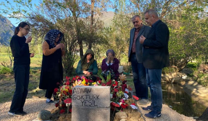 Düziçi ilçesindeki Yeşil Mezarlığı'nda bulunan Adnan'ın kabrini ziyaret eden ailesi, arkadaşları ve vatandaşlar çiçekler bırakıp dualar ediyor.