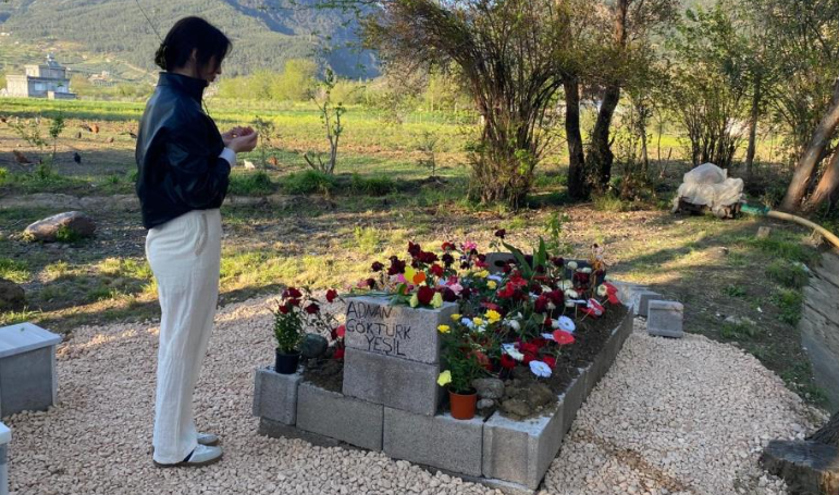 Adnan Göktürk Yeşil'in kabrine çiçek bırakıp dua eden Tuğçe Çolak, "Adnan Göktürk'ün kaybından sonra çok üzüldüm. Çocukların ölmesini, bu şekilde ölmesini asla istemem. Kendisiyle bir kan bağım yok ama beni çok derinden üzdü. Yani biz bu kadar üzülürken ailesi ne durumda bilmiyorum. Allah onlara yardım etsin.