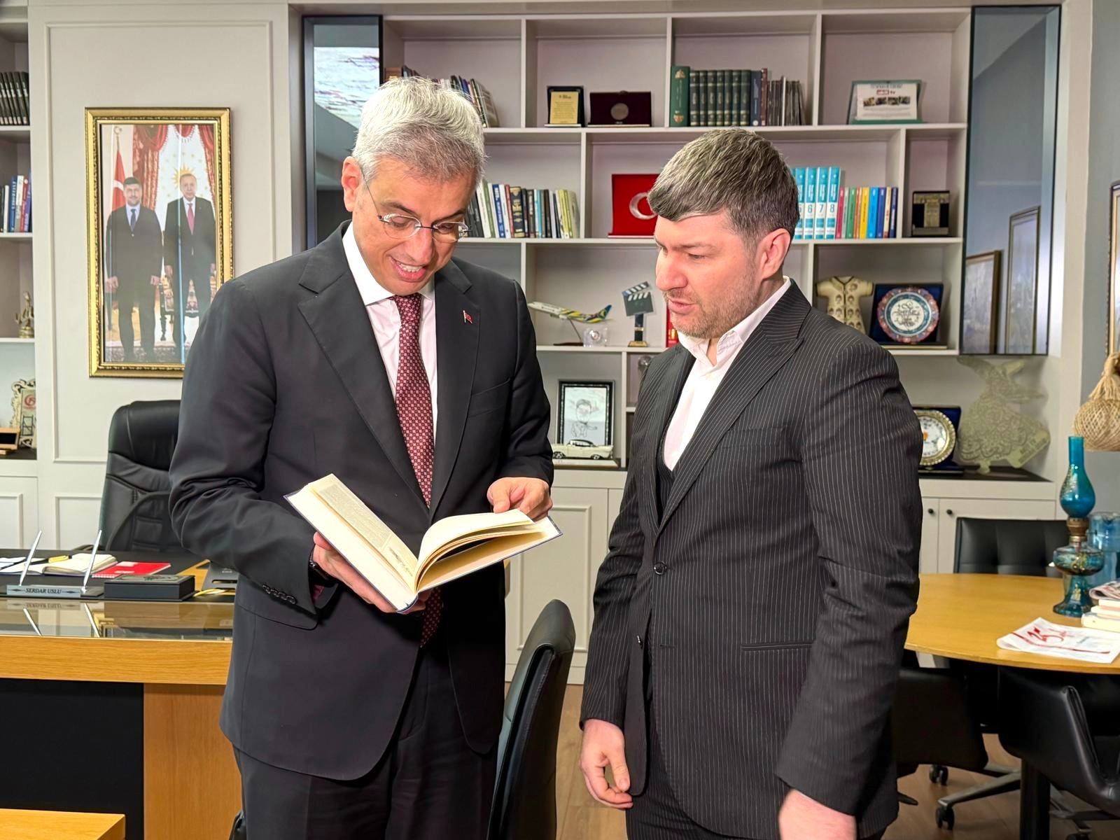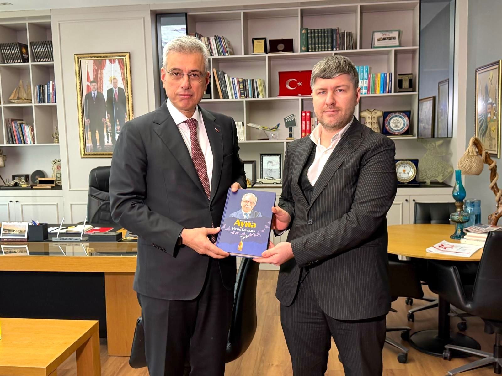 Uslu, Sağlık Bakanı Kemal Memişoğlu'na 28 Şubat’ın cesur kalemi merhum Genel Yayın Yönetmenimiz Hasan Karakaya’nın anısına hazırlanan Ayna isimli kitabı hediye etti.