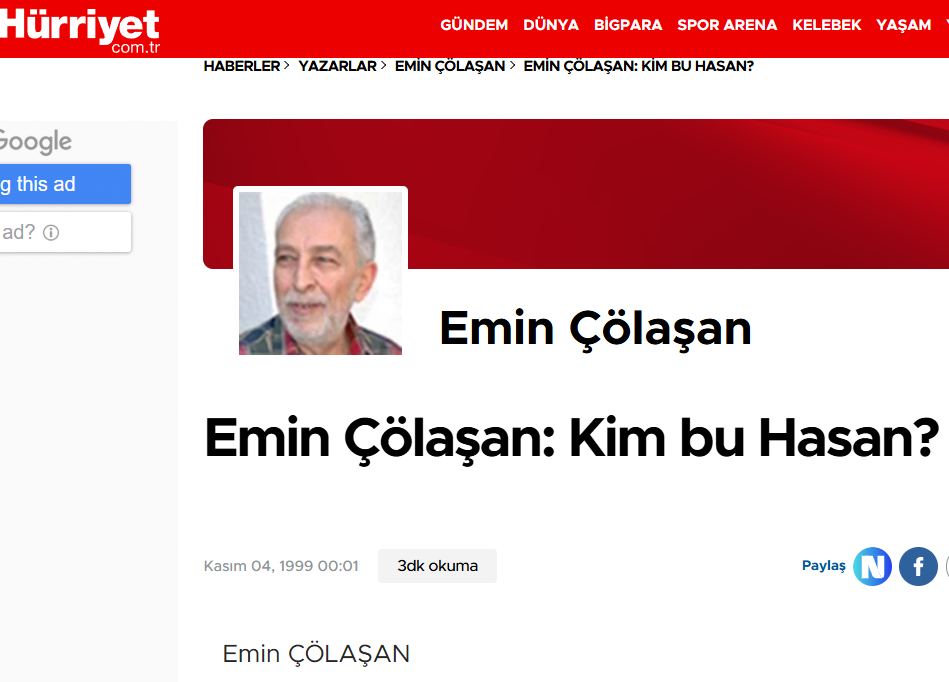 Yaşı 80’e dayanan Emin Çölaşan çıksın, bugün olsun, bizim lanetimizin devam etmemesi için, gerçeği açıklasın..