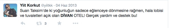 Suan Taksim’deki yoğunluğun sadece eğlenceye dönmesine rağmen, hala lobisi ve tuvaletleri açık olan DİVAN OTEL! Gerçek yardım ve destek bu!