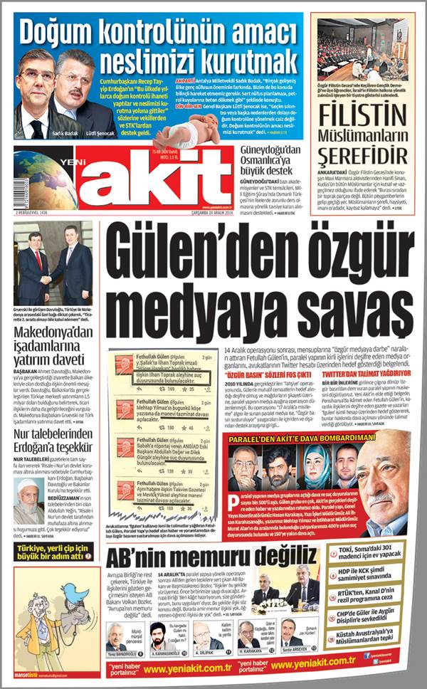 “Akit; bağımsız, bağlantısız ve güdümsüz bir gazetedir... Hiçbir kişi ve kuruluşla; doğrudan veya dolaylı bir bağımız, bağlantımız yoktur!..