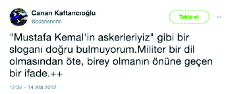 Peki, aynı Rıza, Mustafa Kemal’e karşı olan Canan Kaftancıoğlu’nun bu twitini de “cinsel açlığının dışa vurumu” olarak kabul etmiş mi acaba? “Atatürk’e hakaret eden kadınların hastalığı, fikirsel değil cinseldir” demiş mi Canan Kaftancıoğlu’na?