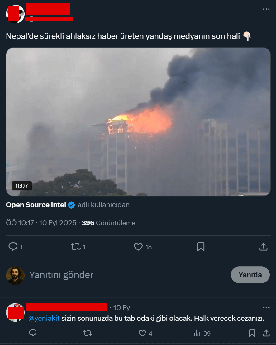 Nepal’de yaşanan olaylarda medya kuruluşlarının binalarının ateşe verildiği görüntüleri bize gönderiyor, “Az kaldı…” notu düşüyorlar…