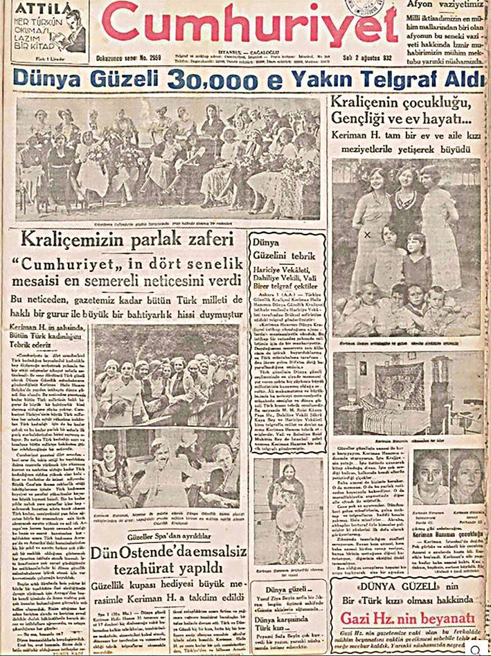 1932 Temmuzunda Türkiye, Ağustosunda ise Dünya Güzeli seçilen Keriman Halis’in bir Osmanlı Şeyhülislamının torunu olduğunu biliyor muydunuz? Belki bilmiyordunuz ama onu hem içeride hem de dışarıda seçtirenler biliyor ve onu seçtirmek için seferber oluyorlardı.