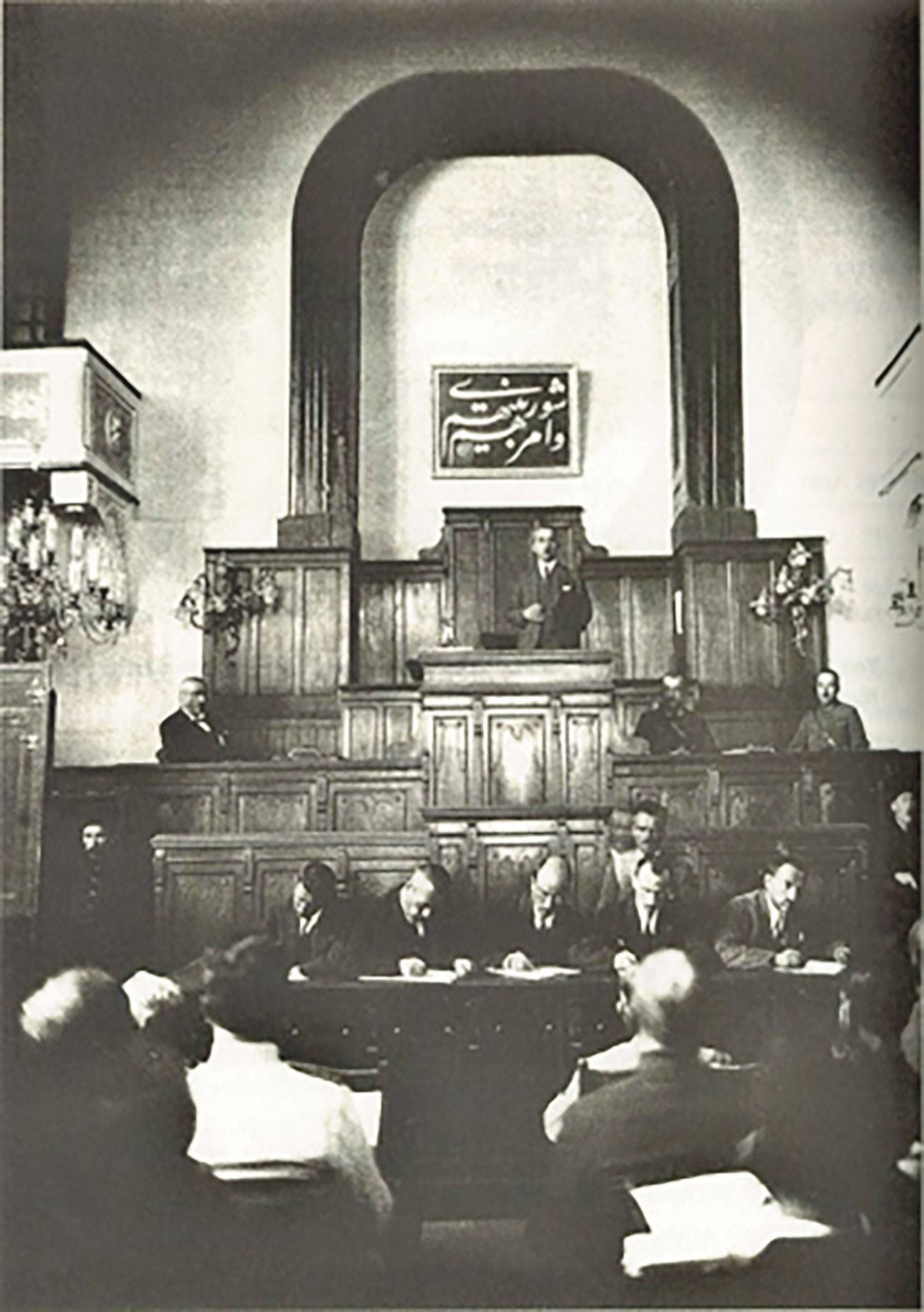 TBMM kürsüsünün arkasında Şura suresinin 38. âyetinin asılı olduğu ender bir fotoğraf. Neden bu fotoğraf Tarih kitaplarımızın kapağında yer almaz ki?