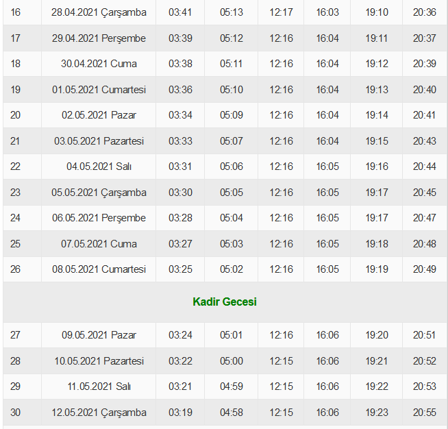 Ramazan ayı bu yıl 13 Nisan Salı günü başlayıp ve 12 Mayıs Çarşamba günü bitecek.