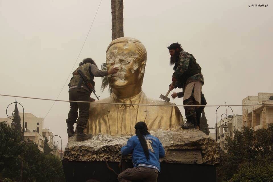 İdlib'in muhaliflerce alınmasından sonra Muhalifler şehirdeki Hafız Esed'e ait dev heykeli yıkmaya başladı.