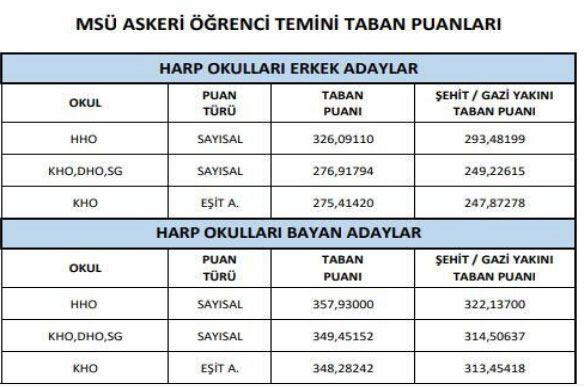 MSÜ yerleştirme puanları 2021 | Hava Harp Okulu, Kara Harp Okulu, Astsubay Meslek Yüksek Okulu puanı