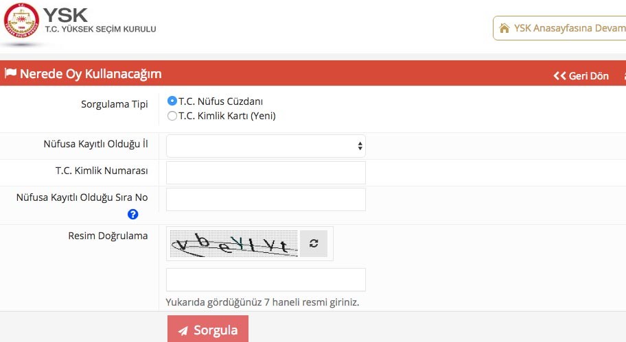 Oyumu nerede kullanacağım-YSK seçmen sorgulama sayfası için tıklayınız