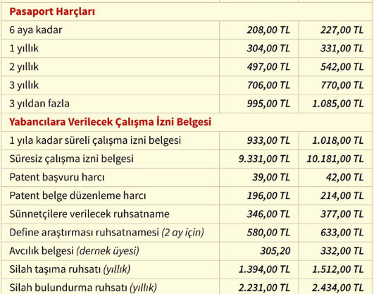 4 yıl ve üzeri pasaportlar için harç bedeli 994 liradan 1.085 liraya yükselecek.