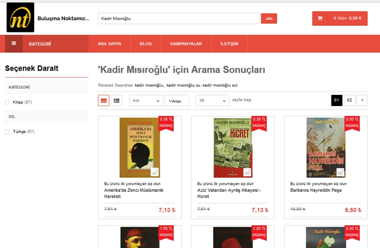 FETÖ'den kurtarılan NT'nin tüm şubelerinde satılan Mısıroğlu kitapları, mağazanın resmi internet sitesi üzerinden de satışa sunuldu.